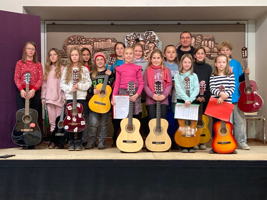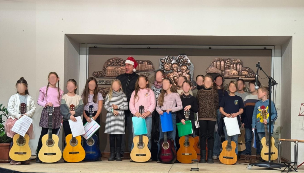 Unter Leitung vom Gitarrenlehrer Herr Schröder gaben die Nachwuchsmusiker bekannte Weihnachtslieder zum Besten.